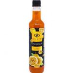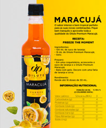 Ingredientes: Açúcar líquido invertido, Suco concentrado de Maracujá, Água, Aroma idêntico ao natural de Maracujá, Aroma idêntico ao natural de Citrus, INS 330, INS 211, INS 223, INS 110 e INS102 Não contém glúten.